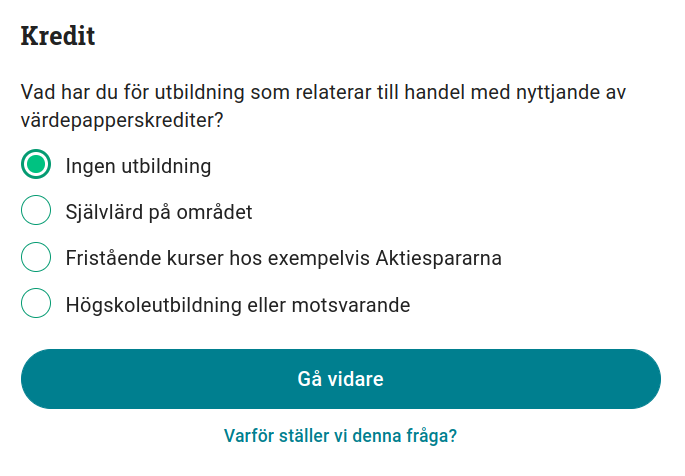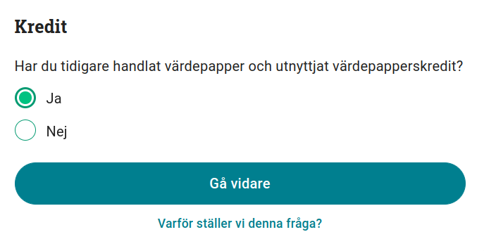 Fråga 2: Har du tidigare handlat värdepapper och utnyttjat värdepapperskredit?