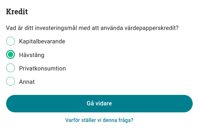 Fråga 4: Vad är ditt investeringsmål med att använda värdepapperskredit?