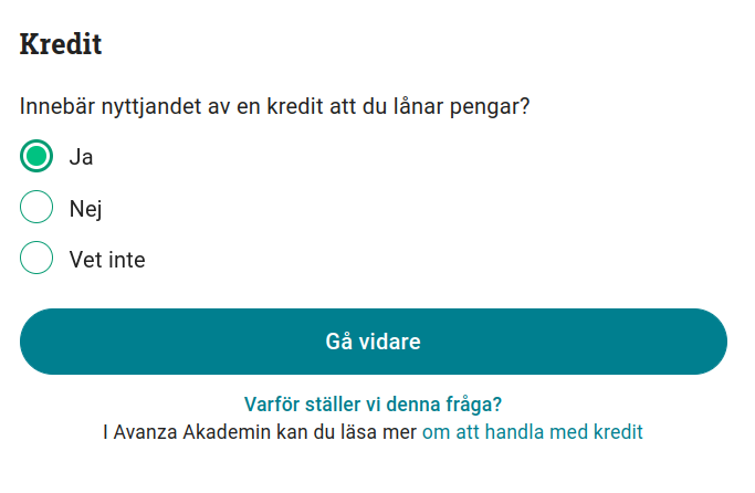 Här följer en guide för att klara Avanzas kunskapsprov om att handla med krediter.
