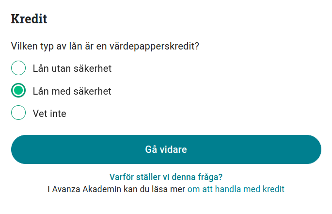Fråga 7: Vilken typ av lån är en värdepapperskredit?
